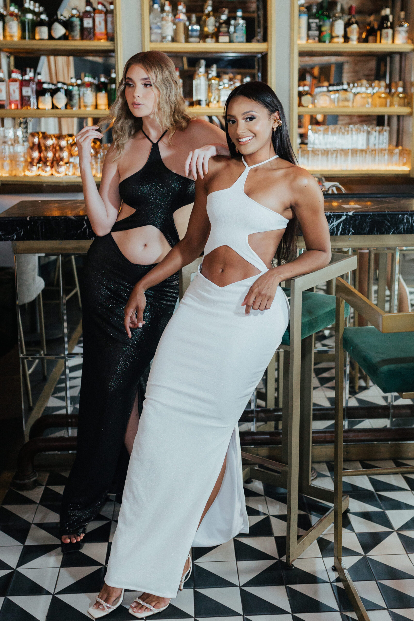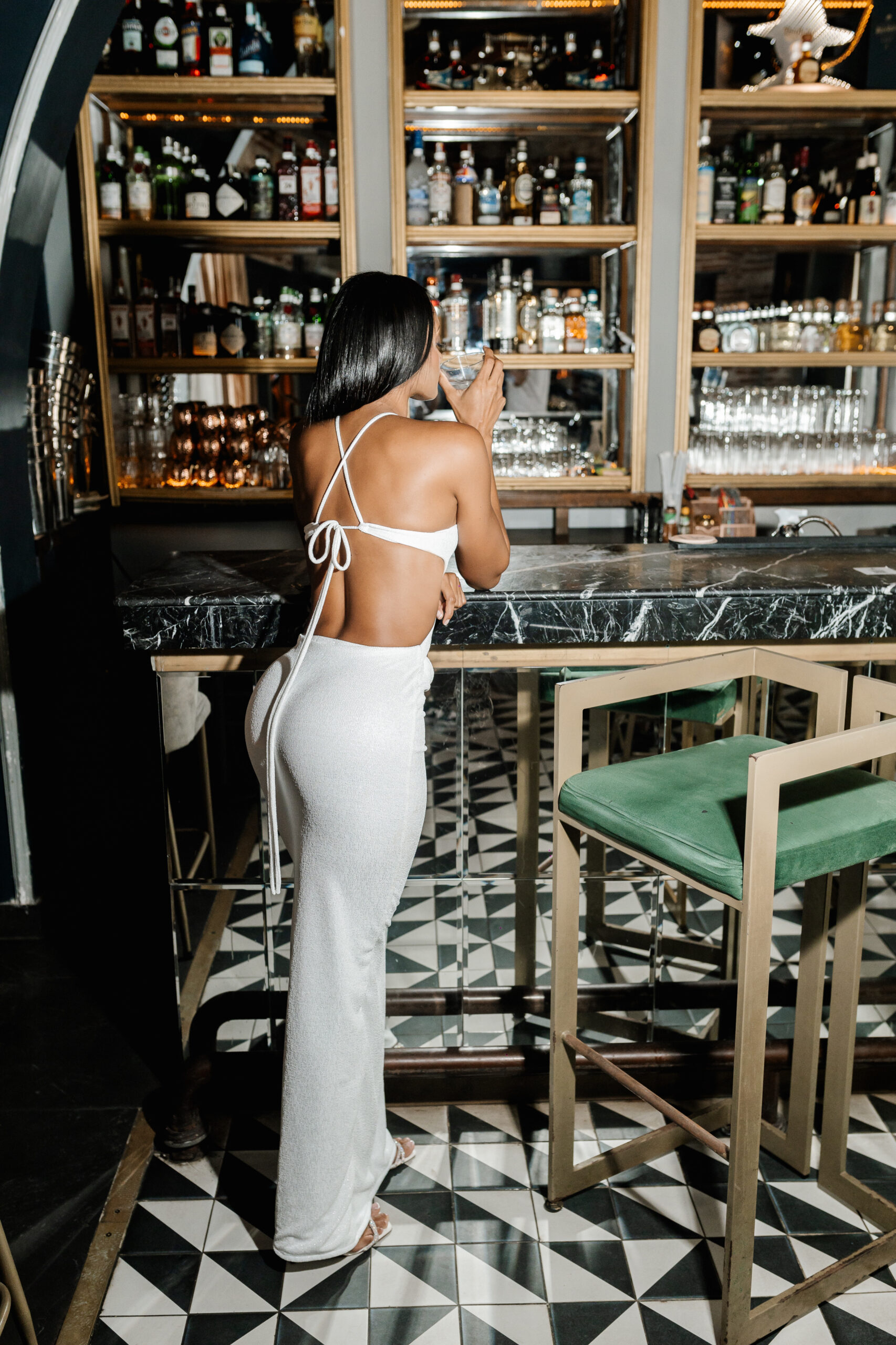 modelo de vestido blanco mide 1,67 cm de estatura.