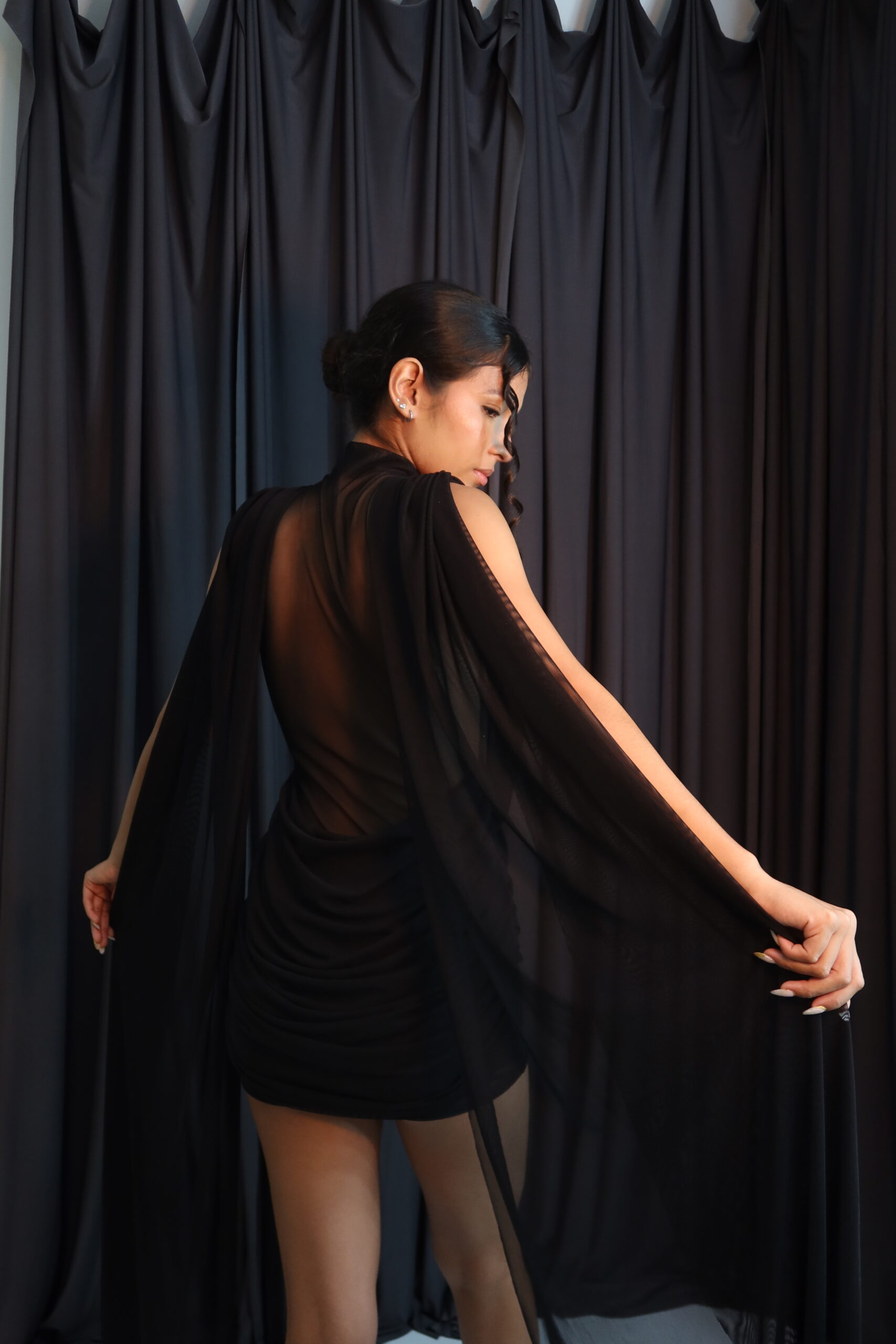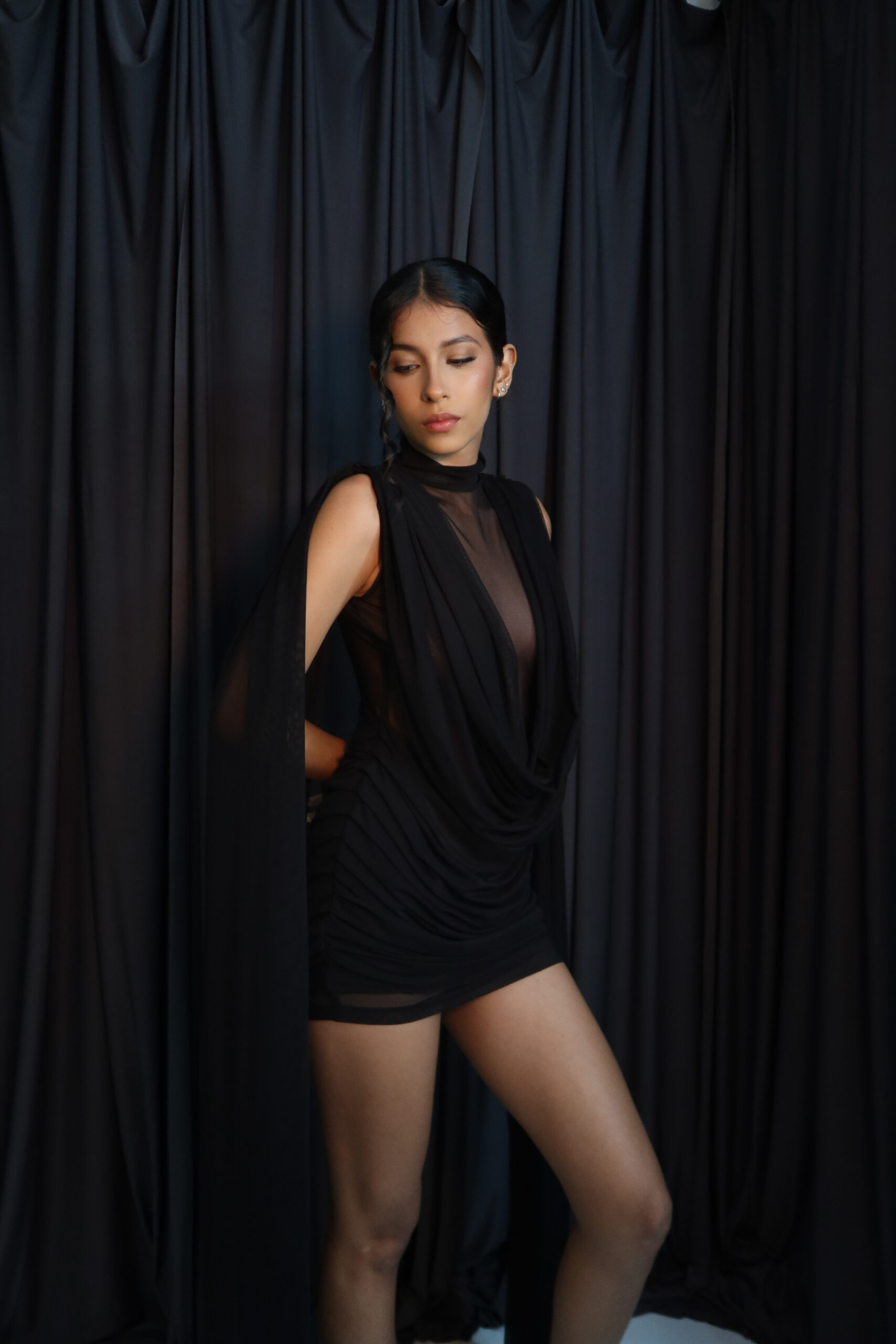 Medidas modelo de traje negro.