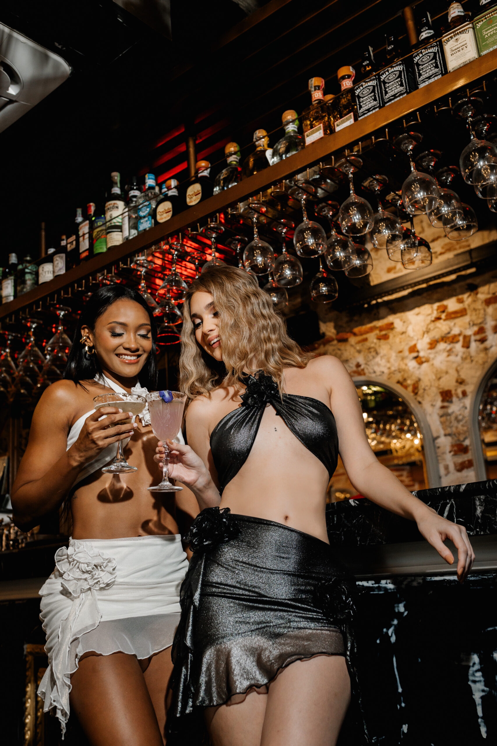 CONSTA DE CROP TOP Y MINI FALDA, CONTIENEN DETALLES EN BOLEROS Y FLORES.