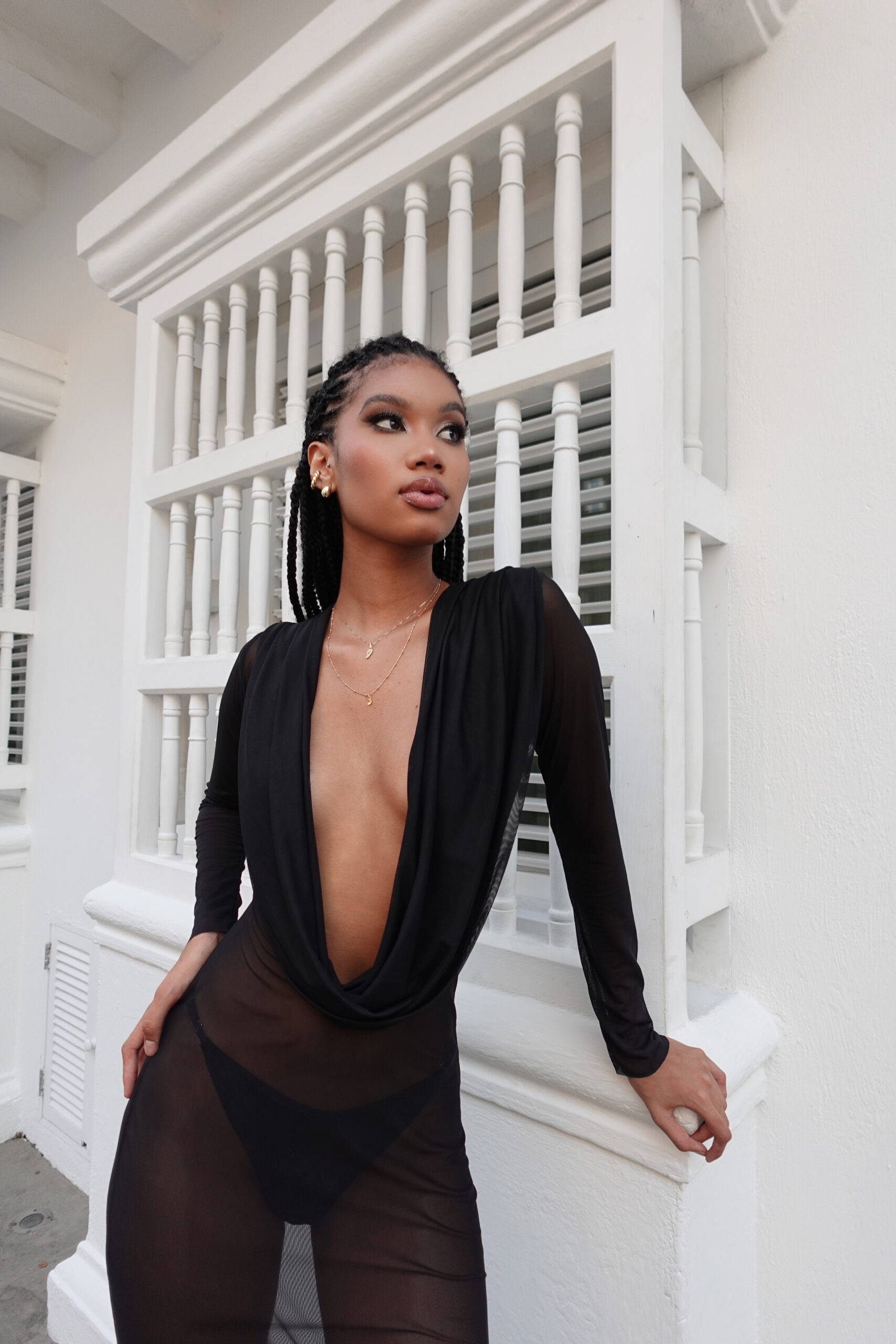 Medidas modelo de traje negro.